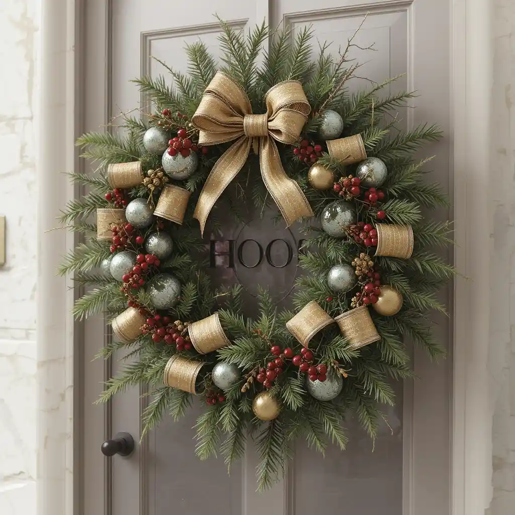 Place sophisticated wreaths on entry doors, crafted with ribbons, berries, and metallic accents. They make a welcoming statement while aligning with professional aesthetics.