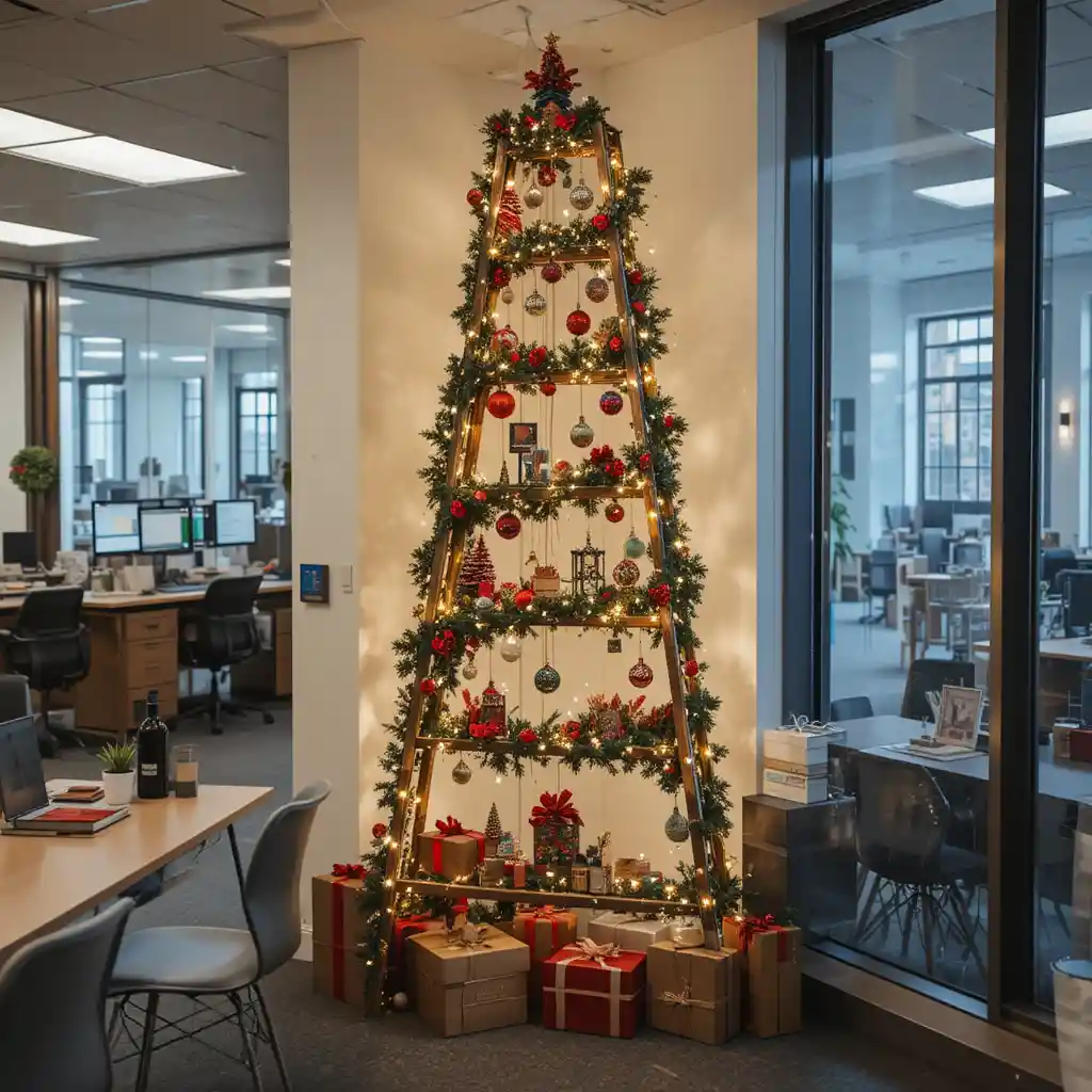 For offices with limited space, replace a traditional tree with a decorative ladder. Decorate it with ornaments, fairy lights, and garlands for a modern yet festive touch.