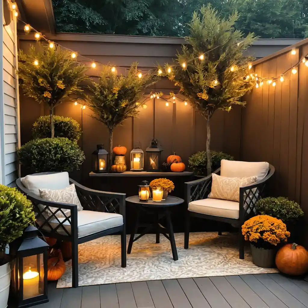 Arrange chairs in a corner of your patio and light the area with rustic lanterns. The soft glow creates a romantic and serene ambiance.