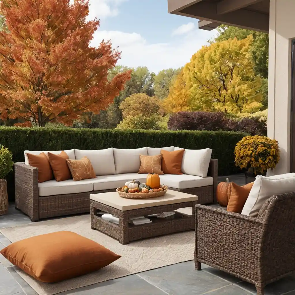 Layering outdoor rugs in autumn colors under your seating area adds warmth and comfort. It’s an easy way to make your space look seasonal without major changes.