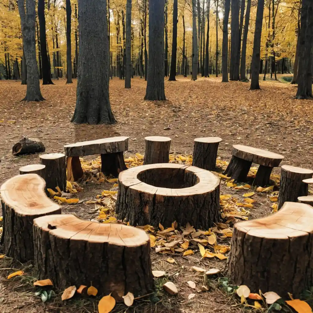 For a nature-inspired setup, arrange tree stumps in a circle. It’s budget-friendly, rustic, and perfect for storytelling around a campfire.