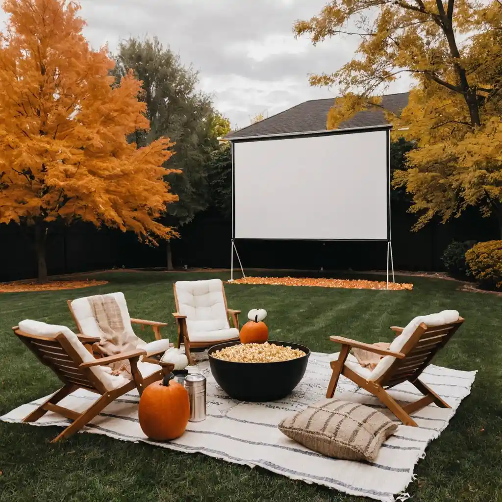 Arrange lawn chairs and blankets facing a projector screen for a backyard movie night. Serve popcorn and hot cocoa for the ultimate fall experience.