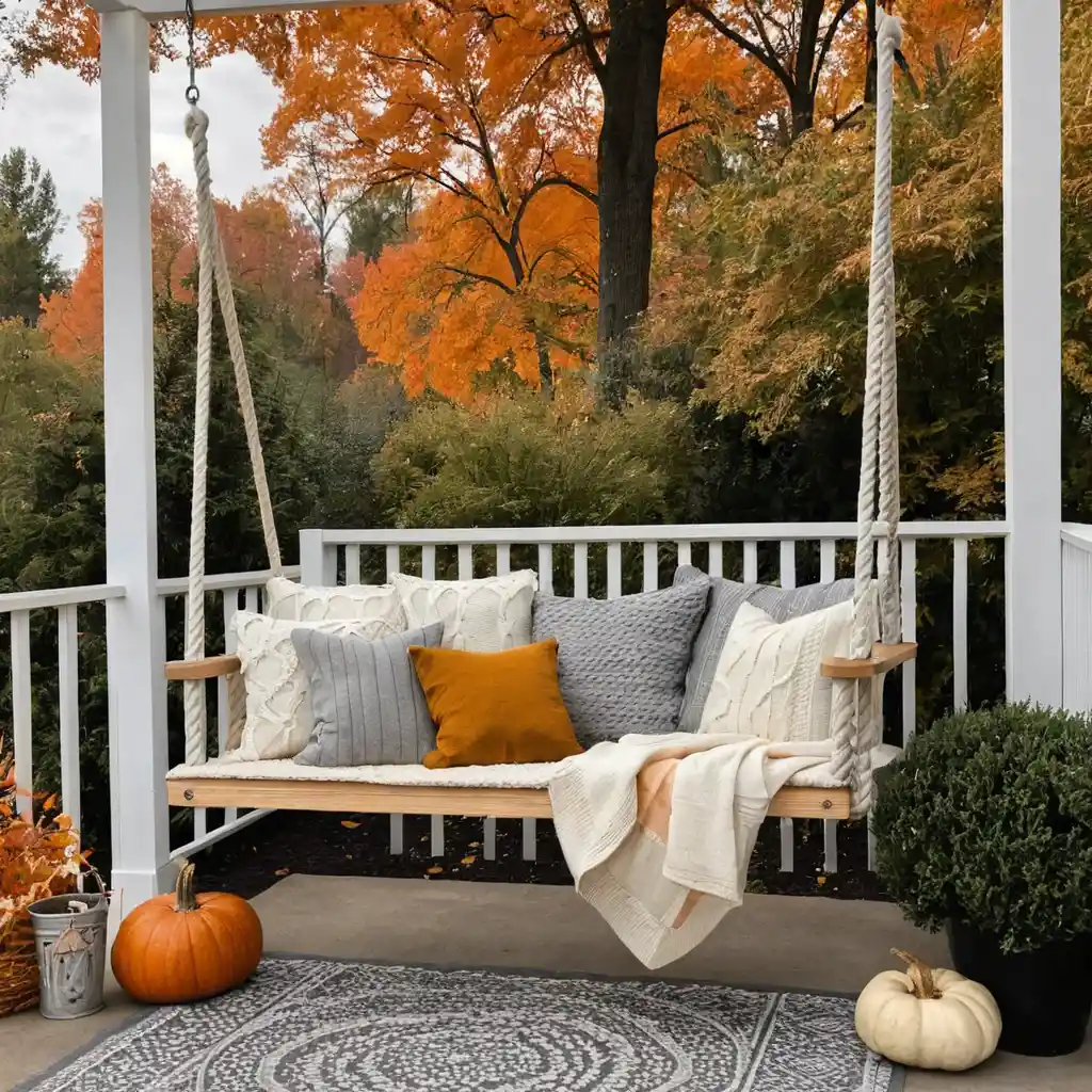 A porch swing is timeless, but adding chunky knit blankets and soft pillows gives it a fall-ready makeover. It’s perfect for relaxing with a cup of hot cider.