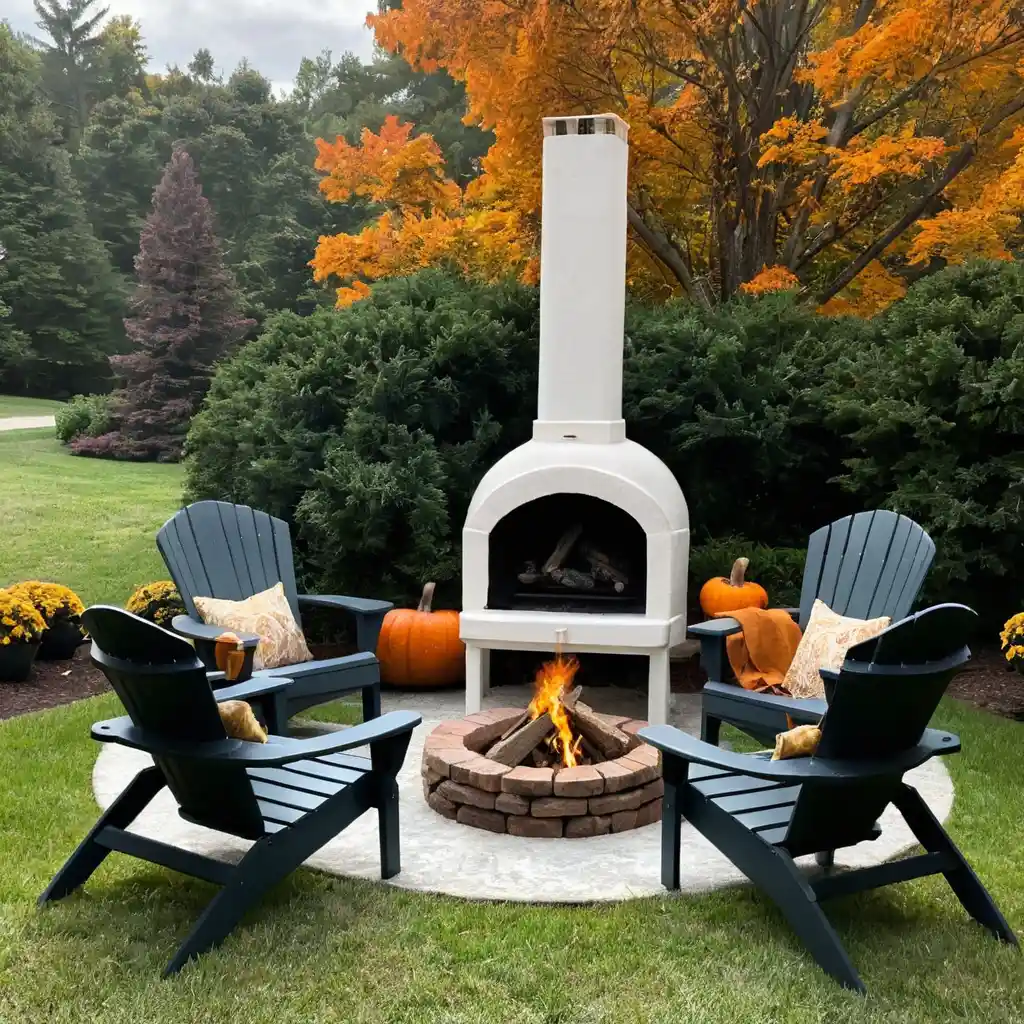 Arrange Adirondack chairs in a circle around a chiminea for warmth and a rustic aesthetic. The open flame creates an inviting atmosphere on chilly nights.