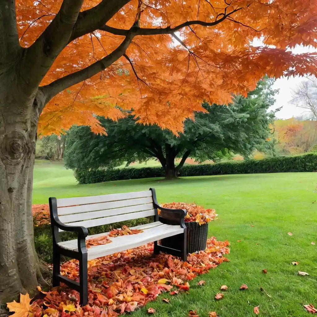 Position a simple wooden or iron bench beneath a maple tree for a stunning natural backdrop. The falling leaves will create a magical autumn setting.