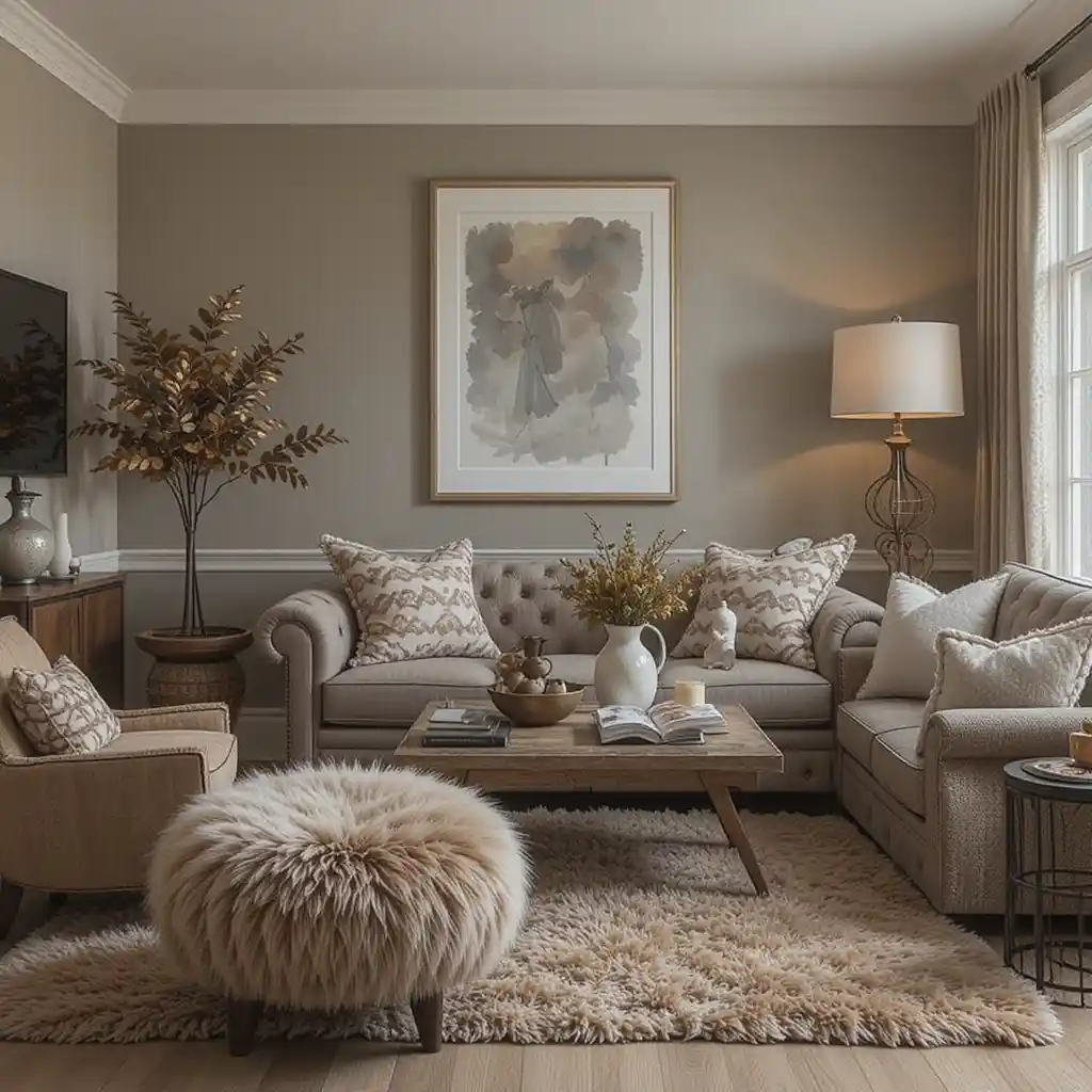 A faux fur stool, pillow, or rug adds a luxurious layer. It’s a great way to introduce softness and warmth without going overboard.
