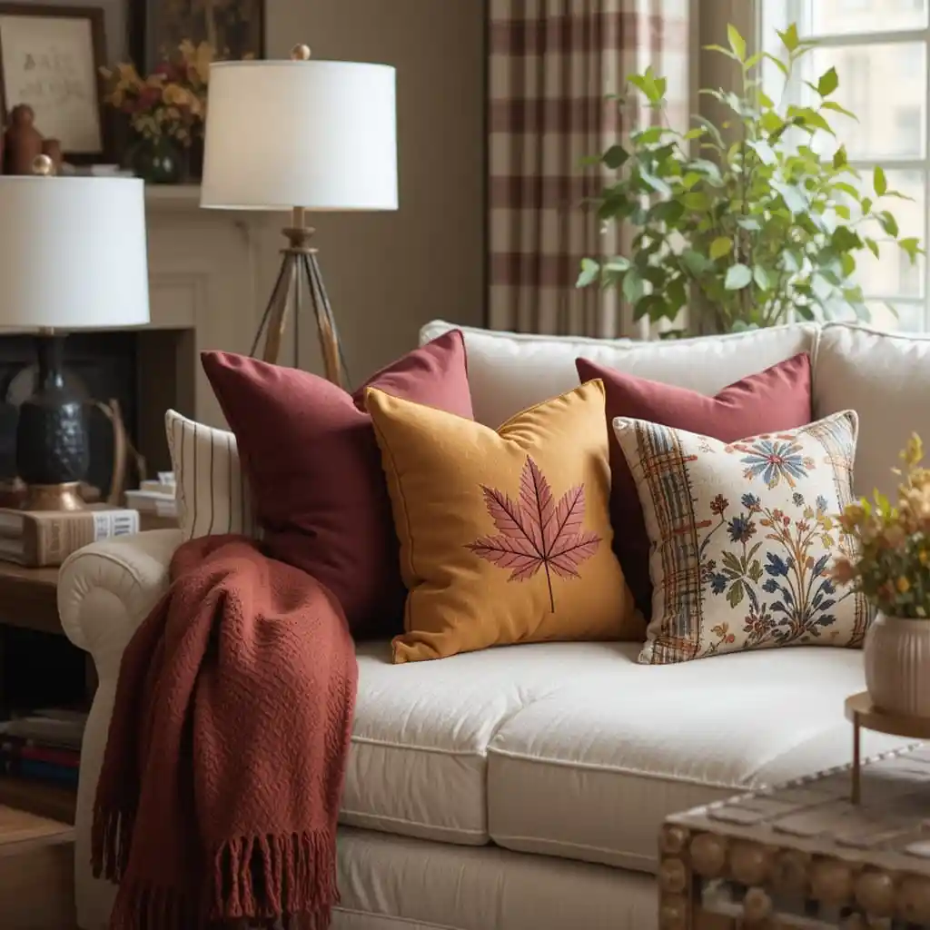 Replace your regular cushions with rich-toned pillow covers in mustard yellow, deep burgundy, and copper. Mix in plaids or leaf patterns for extra flair.