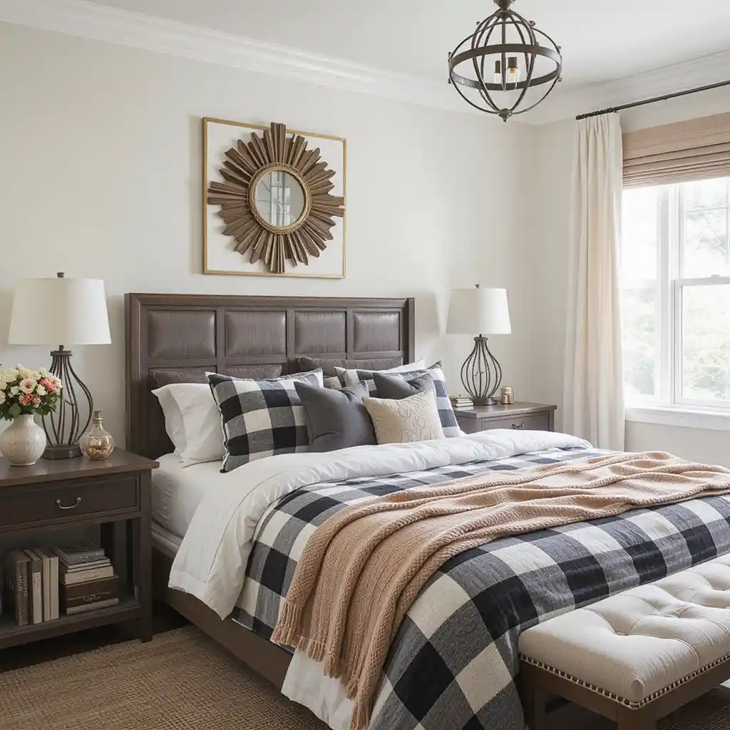 Add buffalo check throws or pillow covers in black and white or red and cream for a rustic lodge-like appeal that’s perfect for fall decor.