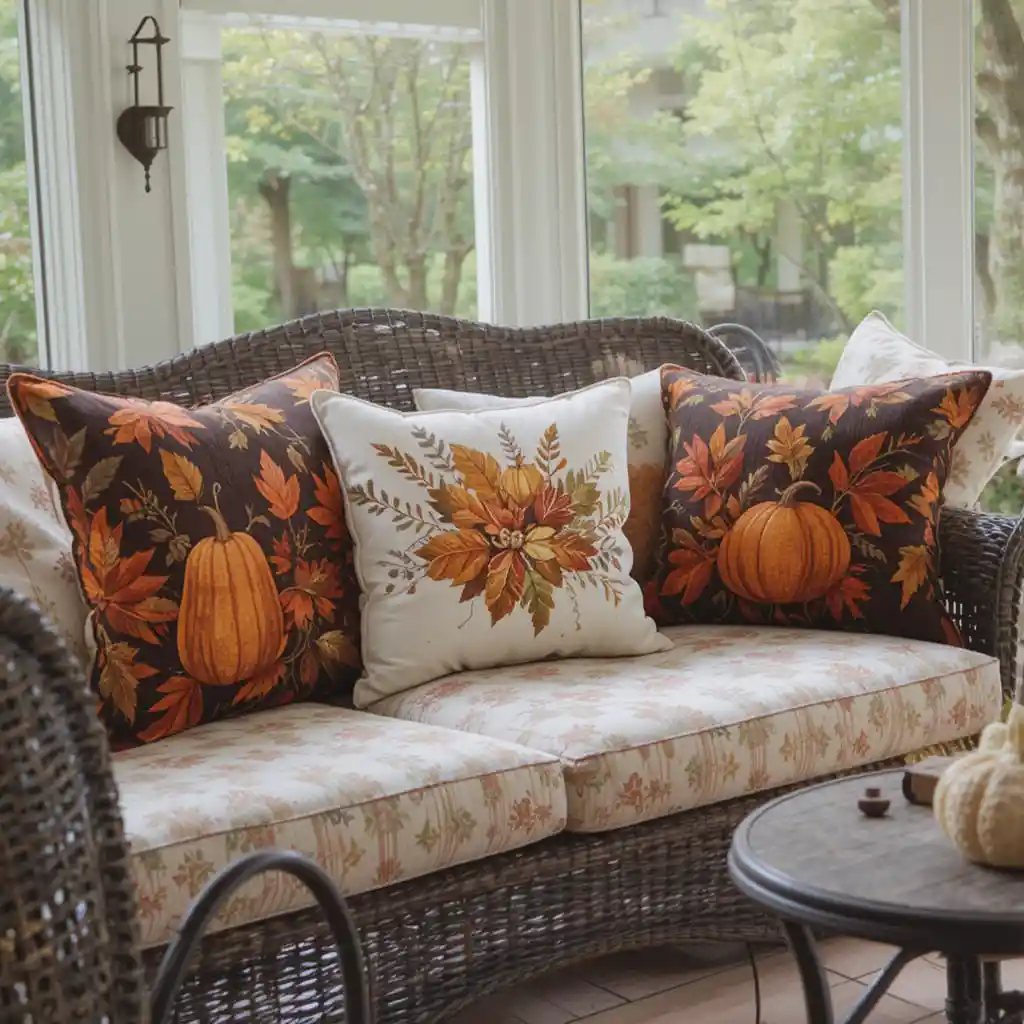 Switch out your regular cushions with fall-inspired pillow covers featuring patterns like plaid, leaves, or pumpkins. They bring seasonal flair without a big commitment.