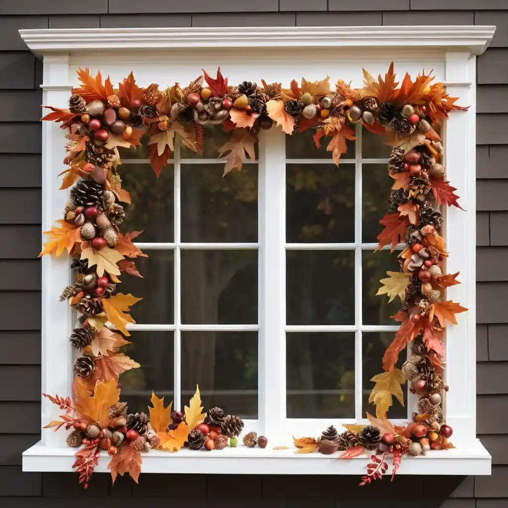 Hang garlands made of faux leaves, berries, or acorns across window frames for a whimsical fall touch.