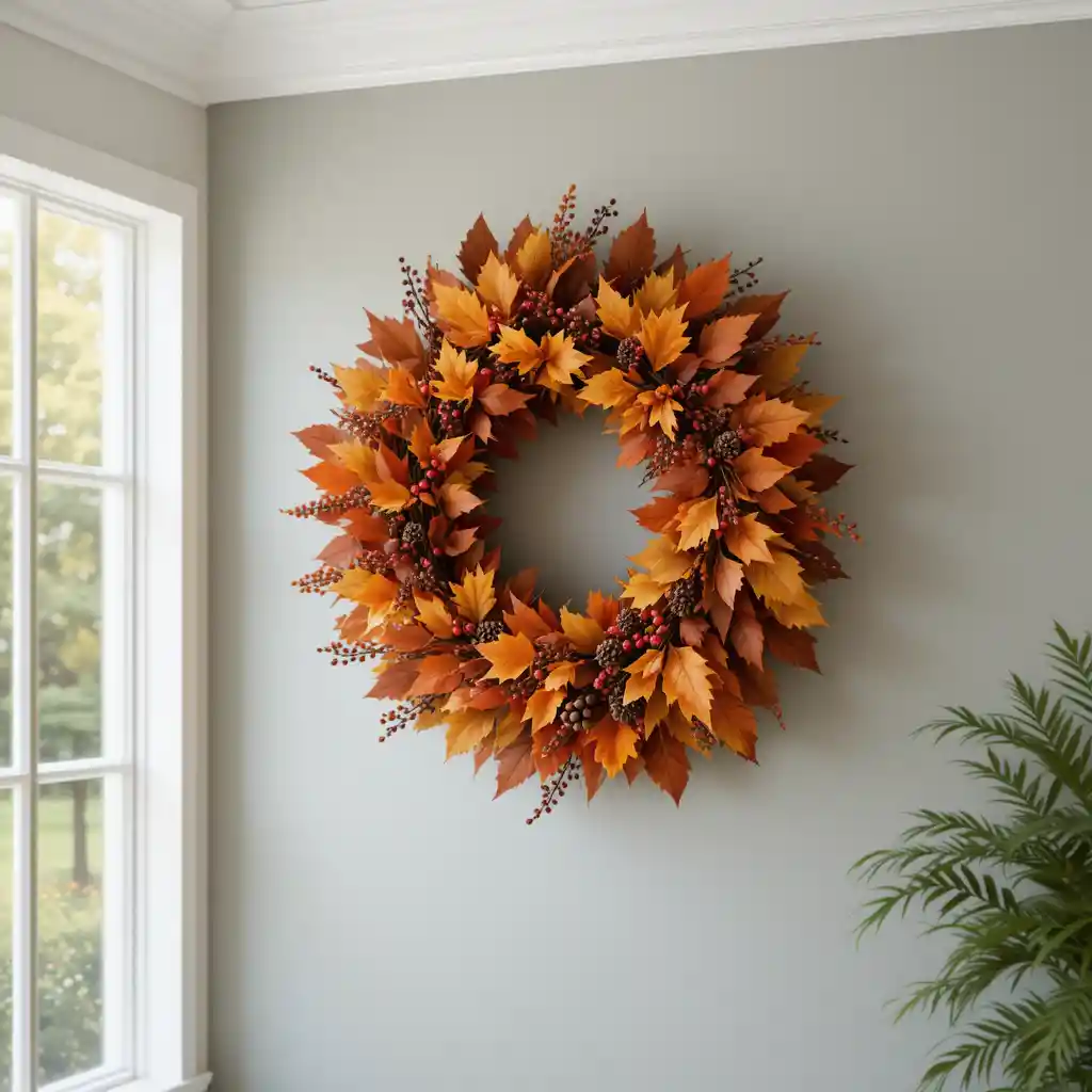 Hang a wreath made of autumn leaves, berries, and pinecones on an interior wall or above the windows. It’s a beautiful way to bring the season indoors.