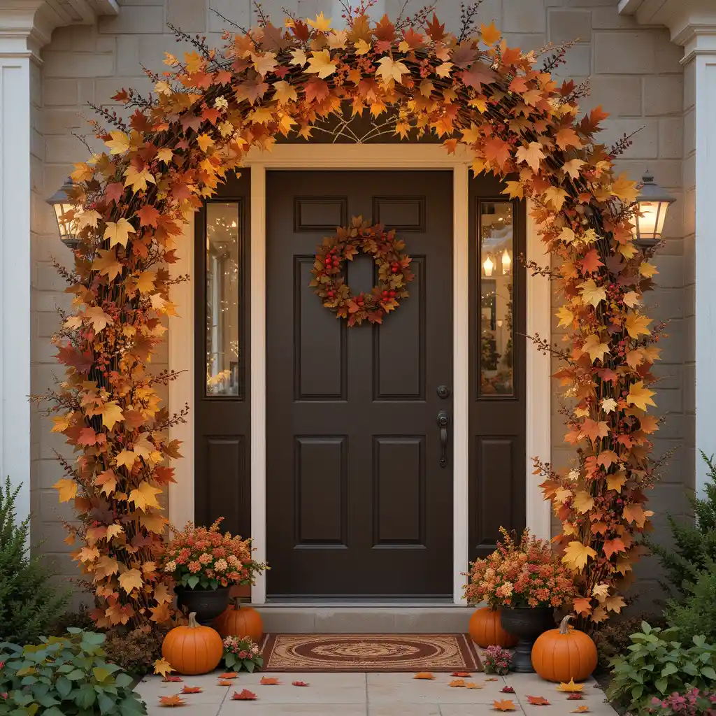 Craft a garland of autumn leaves, berries, and twinkling lights to drape over the entryway. It makes a bold statement and sets the tone for your yard fall decoration.