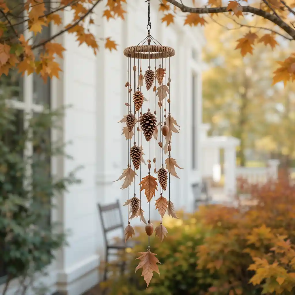 Hang wind chimes crafted with pinecones, acorns, and dried leaves. Not only do they look artistic, but they also create gentle, seasonal sounds in the crisp autumn breeze.
