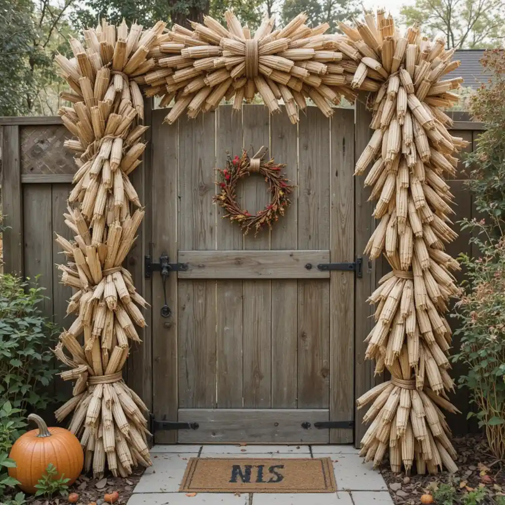 Frame your front door or garden gate with bundles of dried corn husks tied together with twine. It provides a textured, natural look that ties in seamlessly with other fall elements.