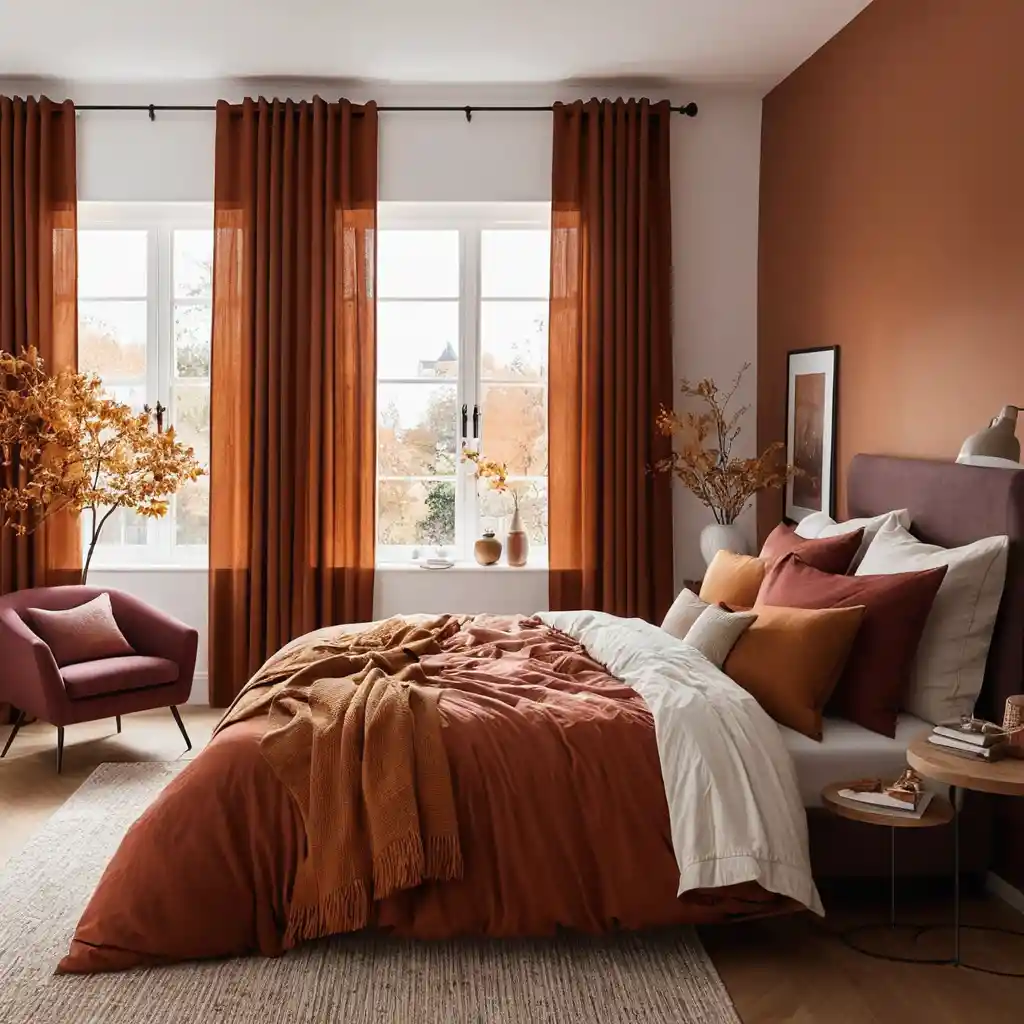 Switch lightweight summer curtains with thicker ones in shades of copper, maroon, or golden brown for a cozy effect.