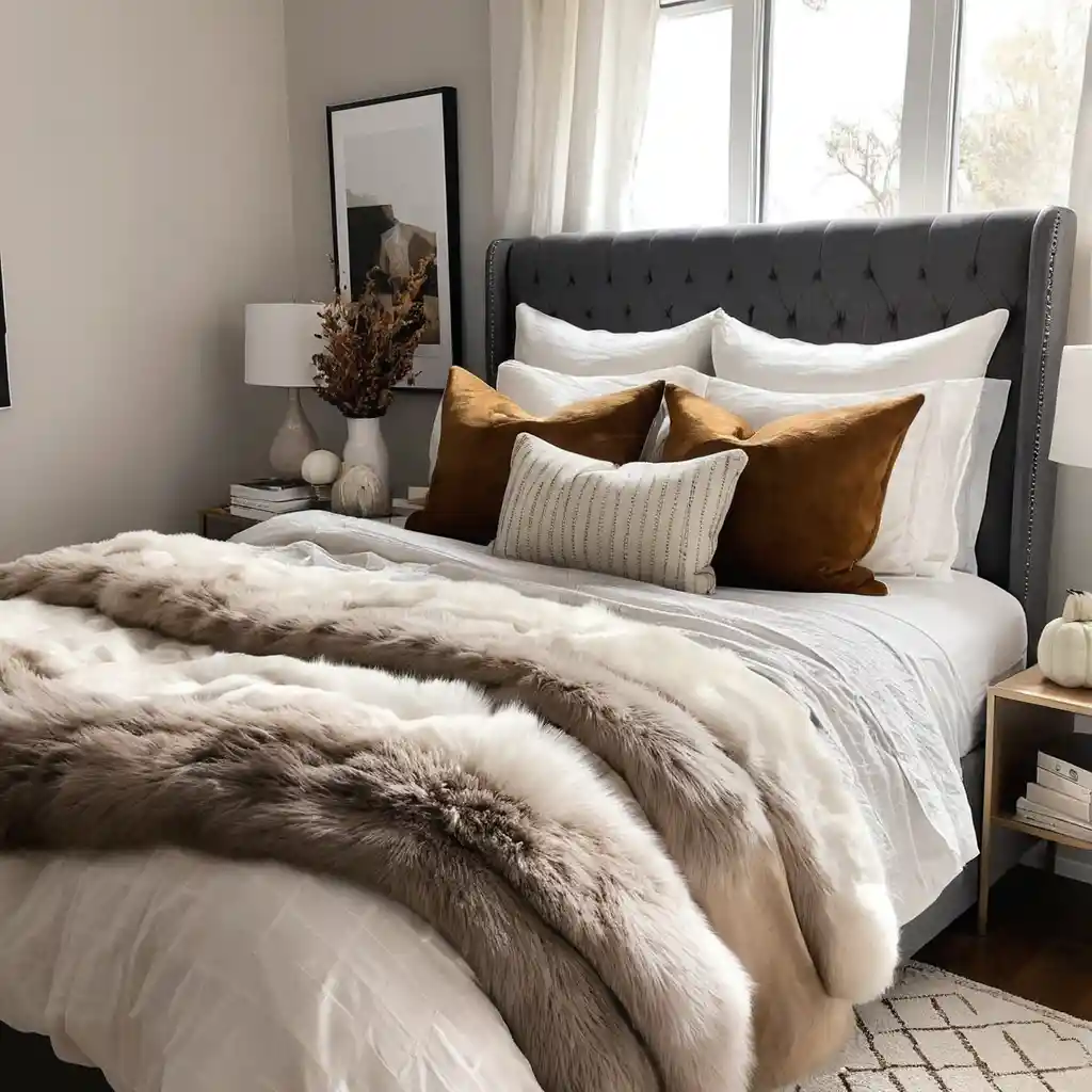 A faux fur throw or pillow adds softness and luxury while keeping the space warm and inviting.