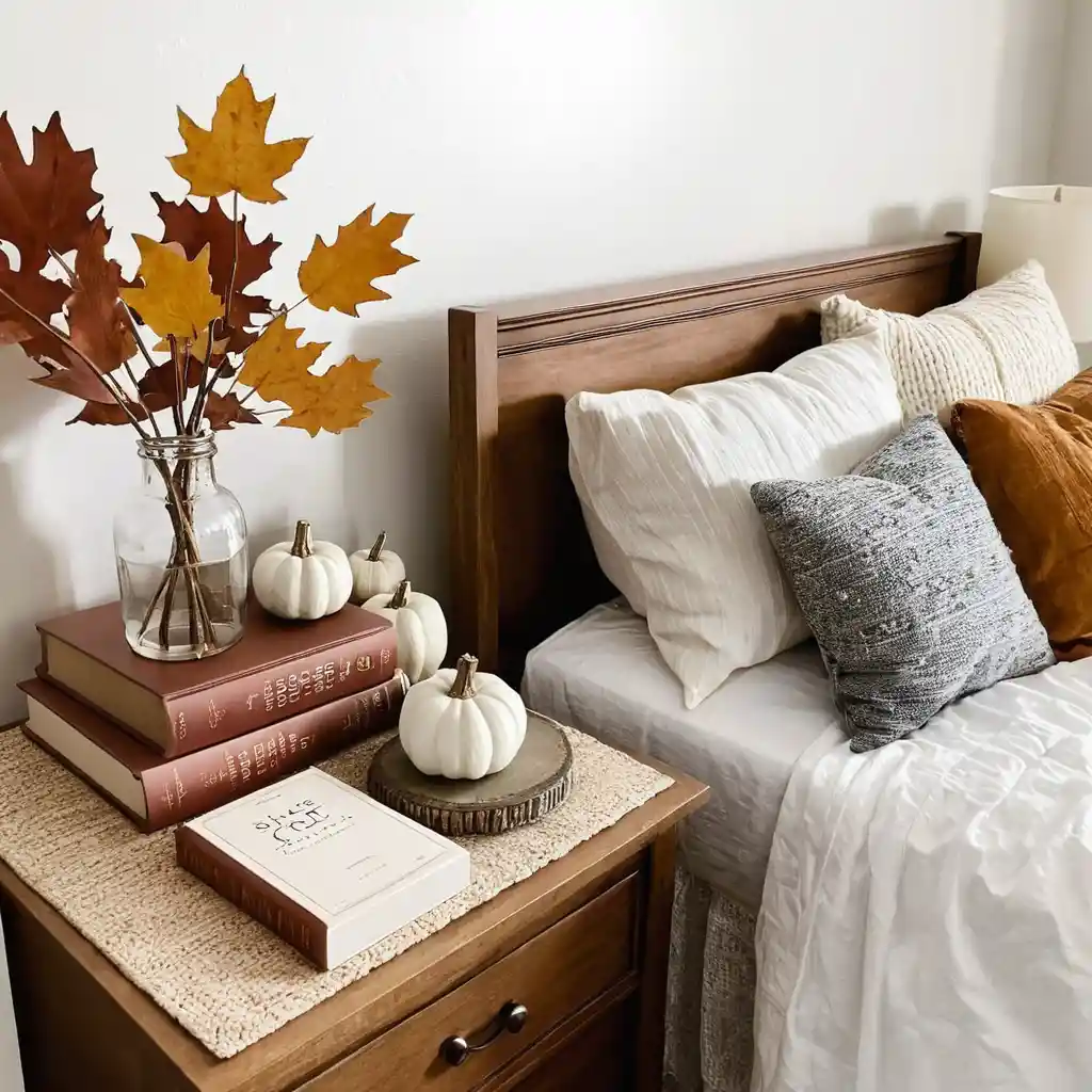 Stack a few autumn-themed or cozy novels on your nightstand to add both style and seasonal charm.