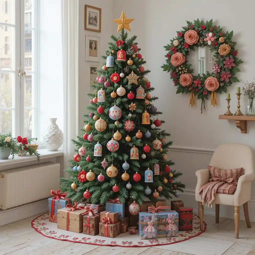 Inspired by Belgium’s famous sweets, decorate your tree with candy-like baubles, golden wrappings, and cocoa-inspired hues. This playful yet elegant theme adds a sweet European twist.