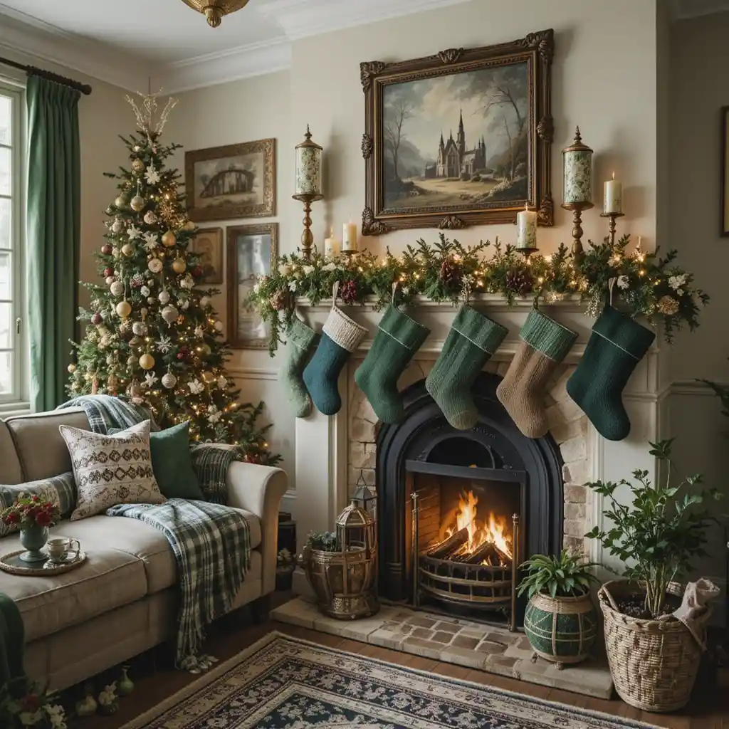 Ireland’s charm comes alive with knitted stockings, plaid throws, and shamrock-inspired green accents. It brings an intimate, cozy cottage feel to your Christmas décor.
