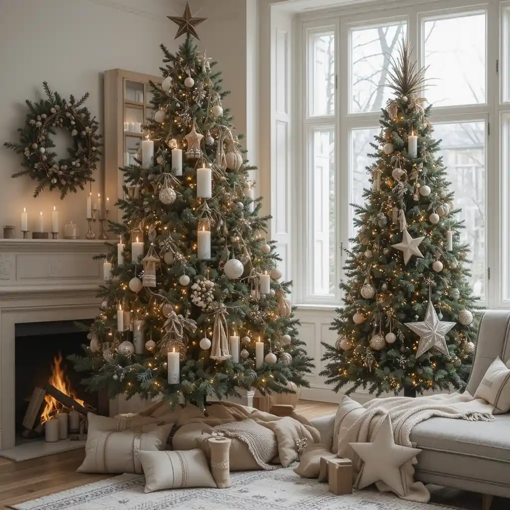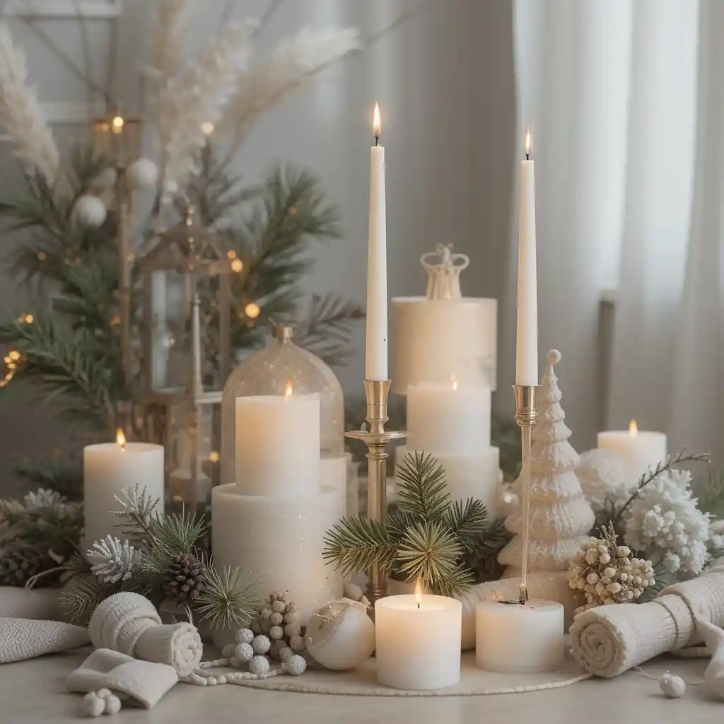 Scandinavian countries master the art of minimalism. Use simple white candles, neutral tones, and natural greenery for a calm, cozy, and modern European style Christmas decor.