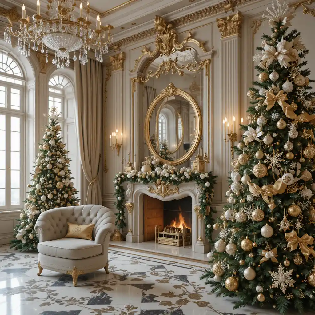 Embrace the luxury of Paris with muted golds, ivory, and crystal accents. Add silk ribbons, vintage chandeliers, and glass baubles to create a refined ambiance that whispers sophistication.