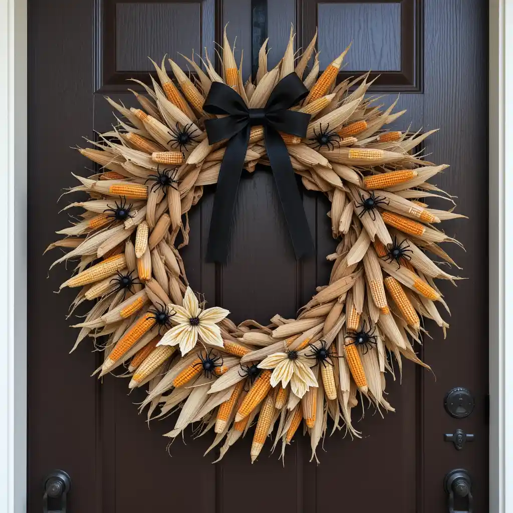 Create a wreath using dried corn husks, faux spiders, or black ribbon. This makes your front door festive while also setting the perfect spooky tone before guests even enter.