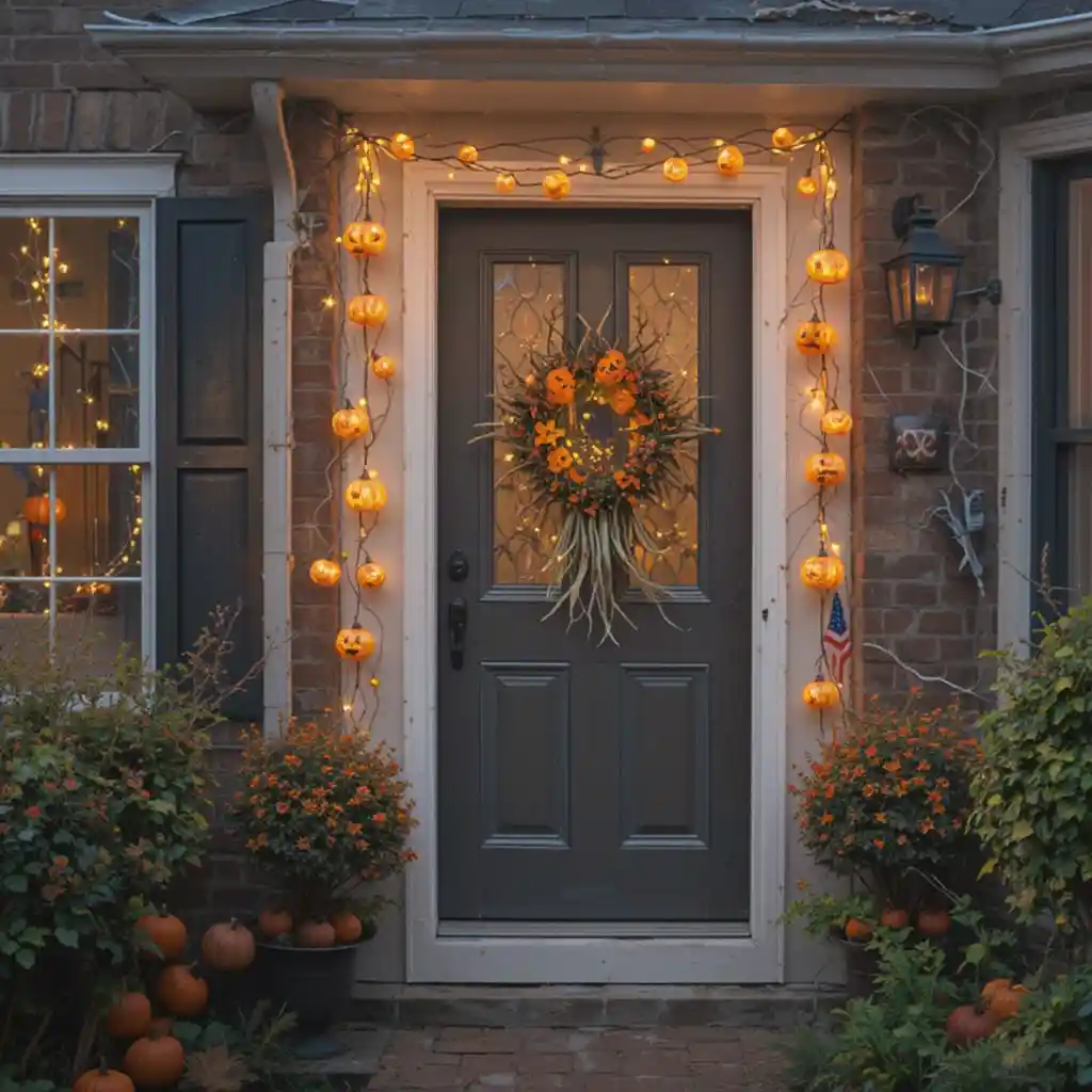 Drape pumpkin-shaped string lights around windows, door frames, or along fences. They not only brighten up your home but also give it a cheerful and haunting glow for the season.