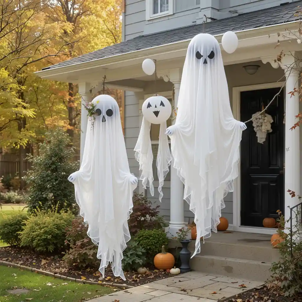 Make floating ghosts using white fabric draped over balloons or foam balls. Hang them in your yard or porch to spook guests as they sway in the autumn breeze.