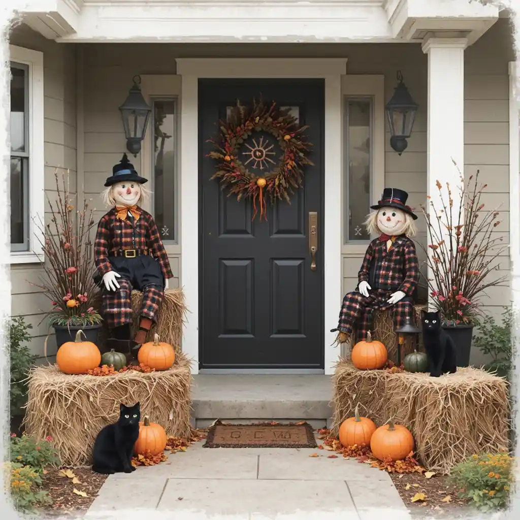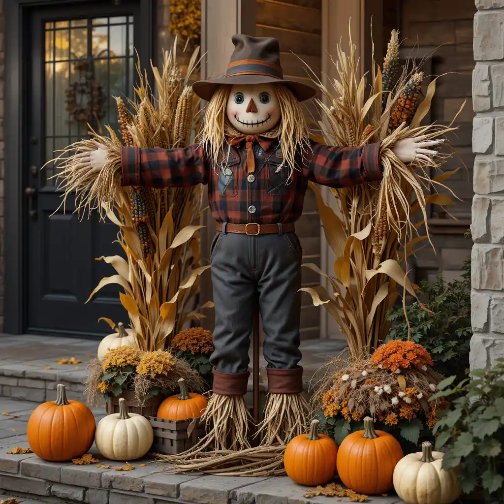 Set up a scarecrow dressed in flannel and straw hats in your yard or porch. Pair it with corn stalks and pumpkins for a traditional fall look with a spooky edge.