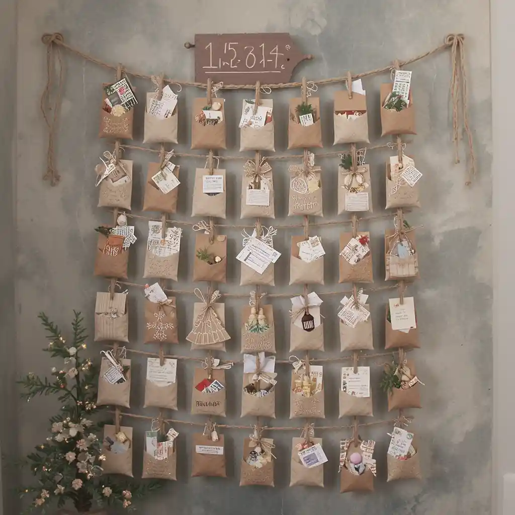 Transform a blank wall into a charming advent calendar with miniature envelopes, bags, or pouches hanging neatly on twine. Each pocket can hold small treats, heartfelt notes, or trinkets, making every day leading up to Christmas memorable while doubling as delightful wall décor.