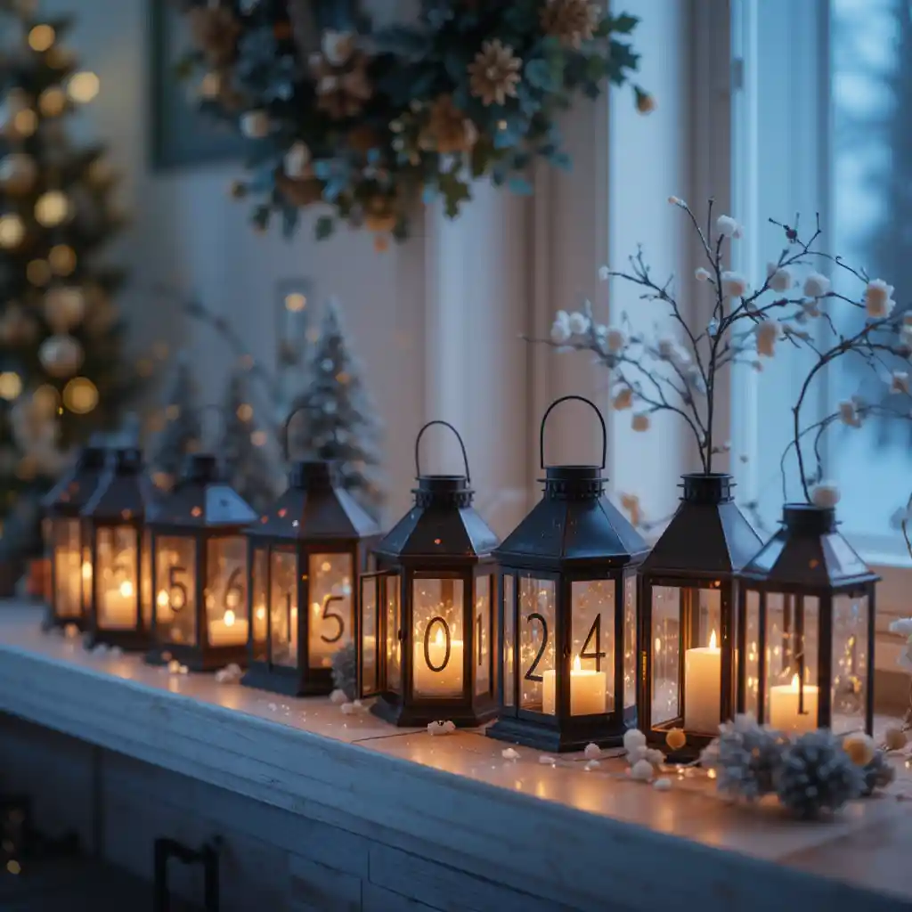 Line up small lanterns, each labeled with a day. Insert LED candles inside and light one more each night. The gradual glow creates a magical ambiance, perfect for cozy winter evenings.
