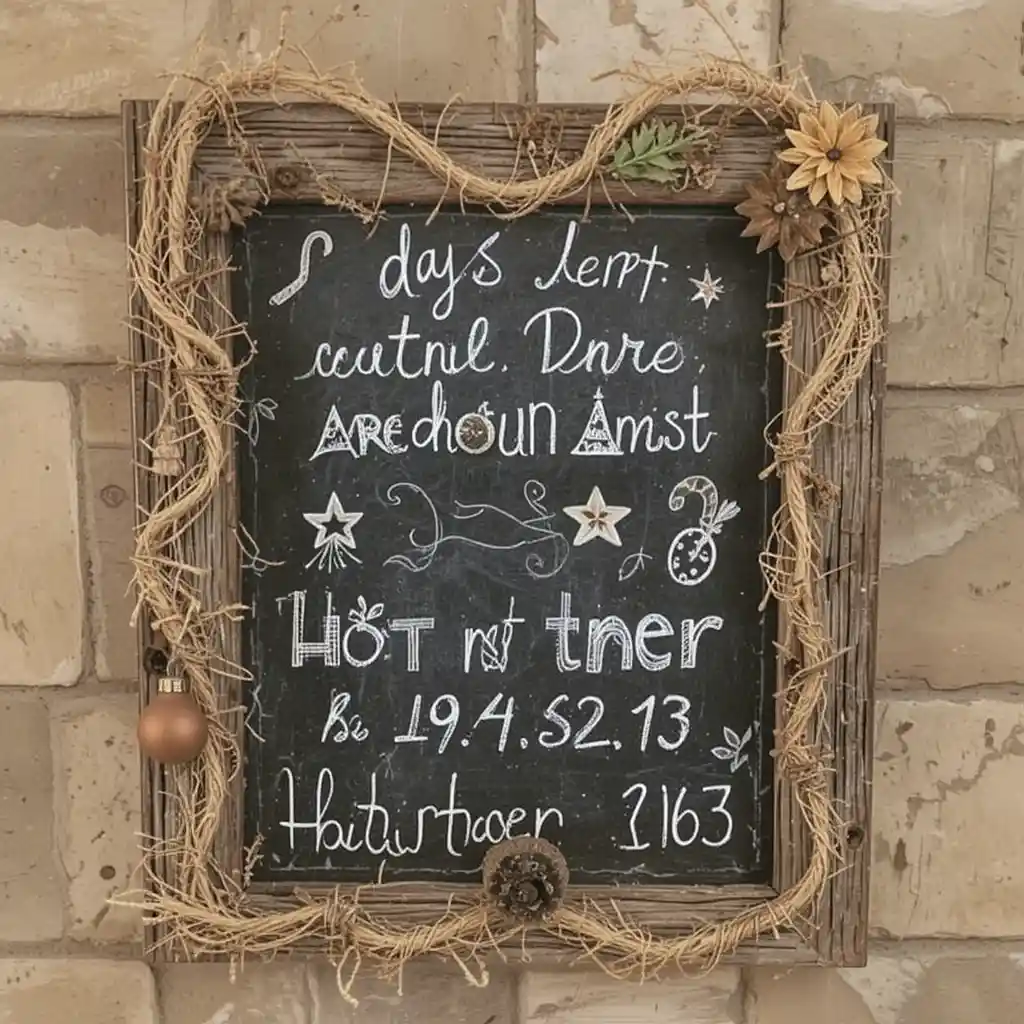 A rustic chalkboard countdown sign is both functional and decorative. Write the number of days left until Christmas with chalk, surrounded by festive doodles of holly, stars, or candy canes. Its charm lies in the daily ritual of updating the number, creating a warm family tradition.