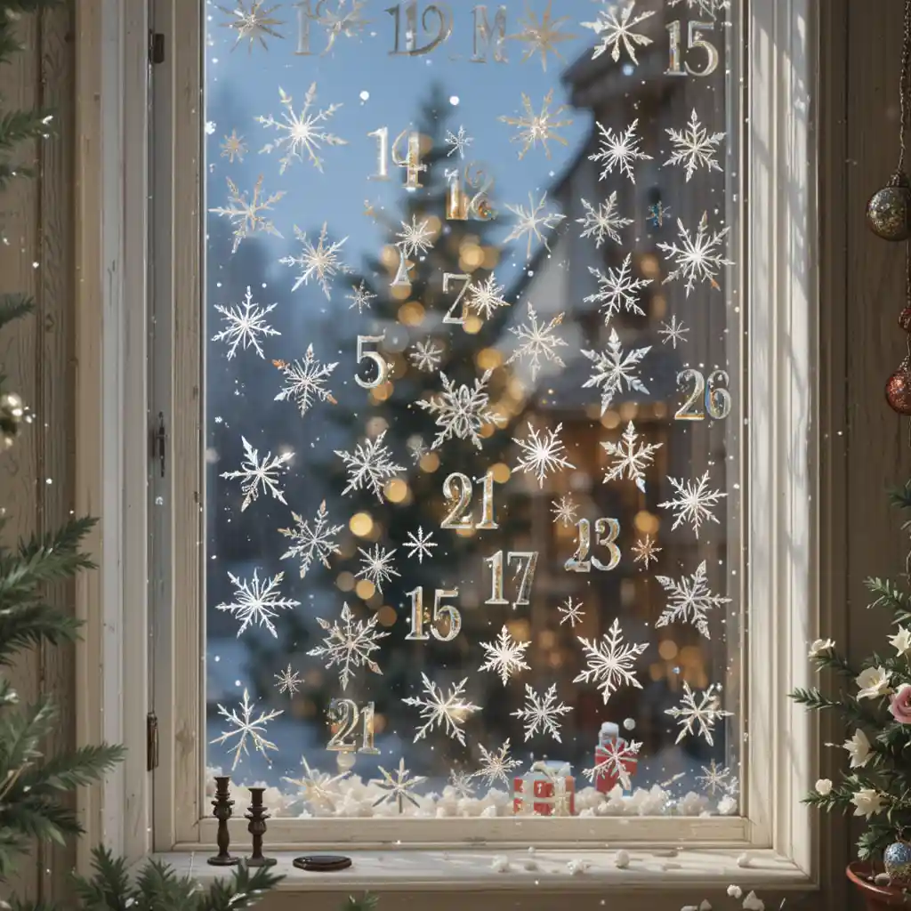 Place numbered window cling stickers in festive shapes like snowflakes or stars. Remove one each day, revealing a clean glass window by Christmas Eve. This adds a playful and decorative twist to your holiday décor.