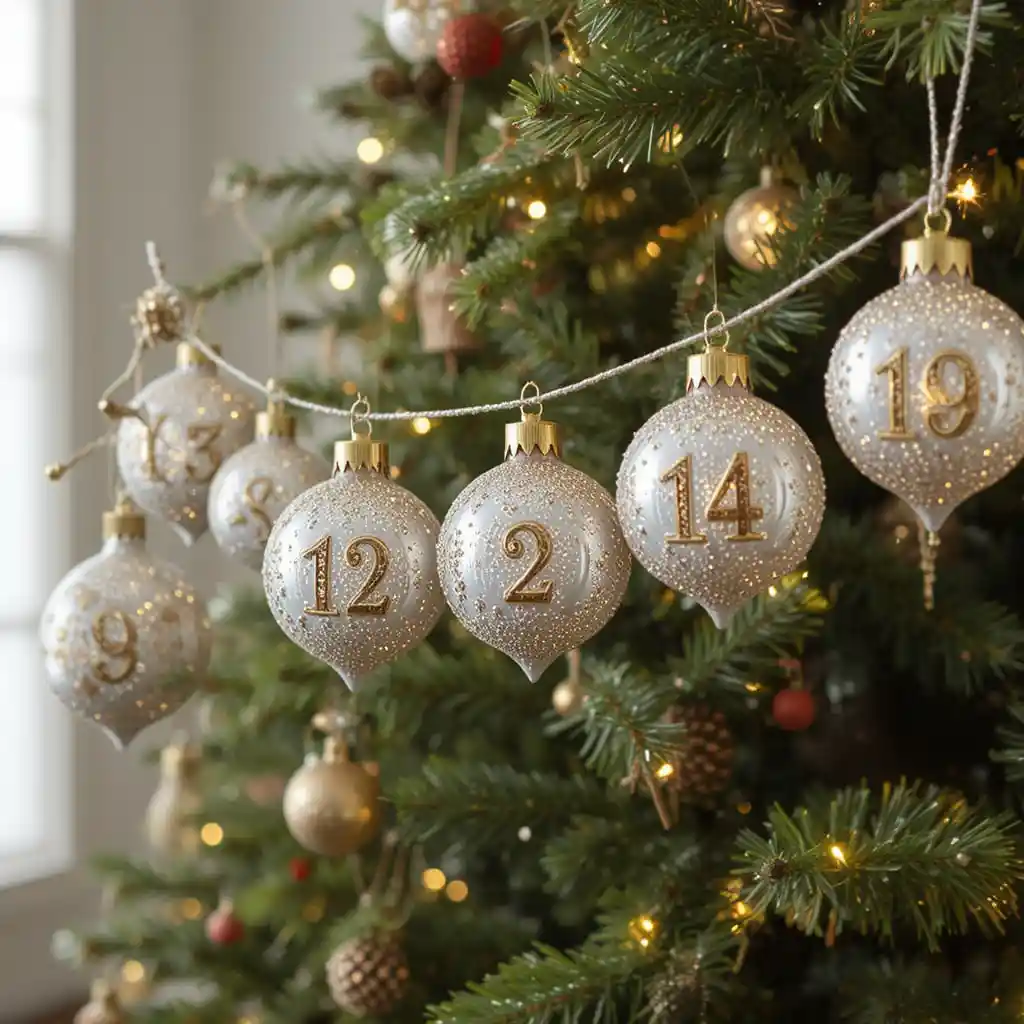 Use ornaments numbered from 1 to 25 strung across a garland. Each day, remove or flip an ornament to mark the countdown. This idea brings sparkle to your home while integrating seamlessly with your tree and other festive décor.