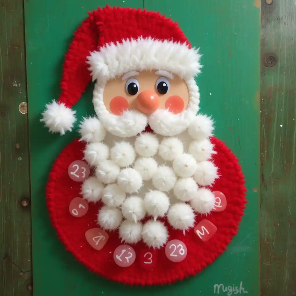 Create a Santa face with a fluffy cotton beard, where each cotton ball represents a day. Kids can glue one on daily until Santa’s beard is full, adding both excitement and a playful touch to your Christmas countdown decoration ideas.