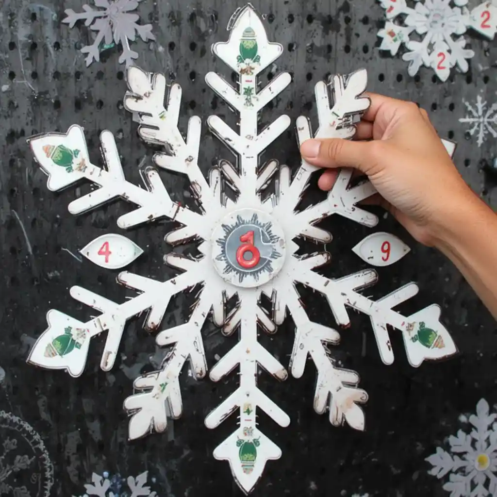 Attach snowflake-shaped cutouts with numbers onto a pegboard. Each day, replace the snowflake with a festive symbol such as a bell or reindeer. This creative twist adds wintry beauty while keeping the countdown interactive.