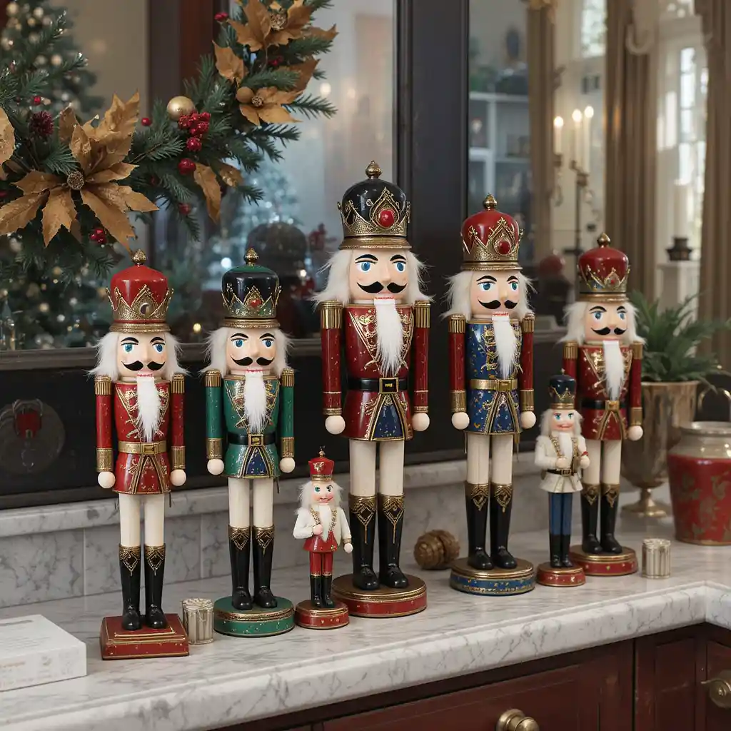 Add a traditional touch by placing nutcracker figurines in different sizes along your counter. Their bold colors and classic designs bring timeless Christmas character to your space.