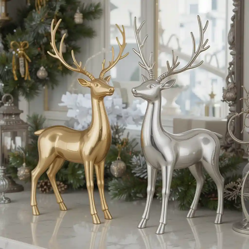 Position metallic reindeer figurines—gold or silver—on your counter. Their sleek appearance adds a modern and sophisticated flair to your Christmas décor.