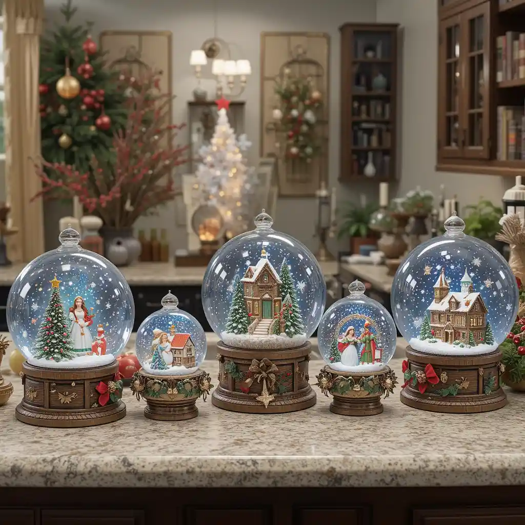 Line up a collection of snow globes across the counter. Each one tells its own magical Christmas story, creating a nostalgic and whimsical atmosphere.