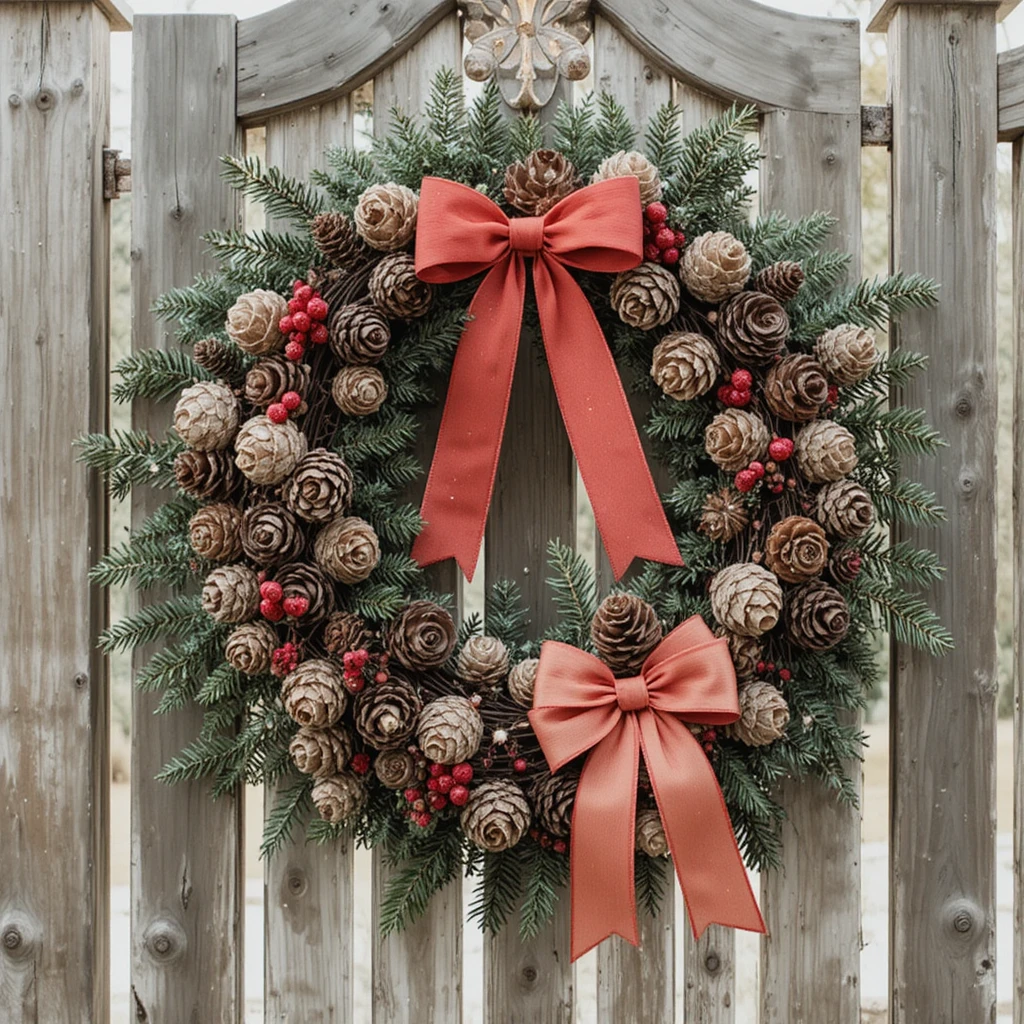 Large wreaths decorated with pinecones, berries, and ribbon can be hung on fences or trellises. These bold displays instantly enhance your garden with holiday elegance.