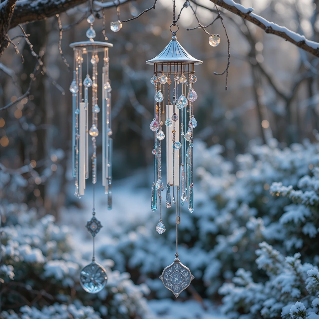 Choose metallic or glass wind chimes with frosty tones. Their gentle sounds add a sensory element, making your garden feel alive even in the stillness of winter.