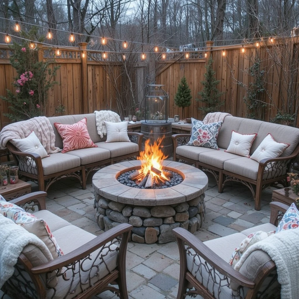 Set up a fire pit surrounded by comfortable seating and cozy blankets. This focal point draws family and friends outside, offering both warmth and a memorable gathering spot during winter evenings.