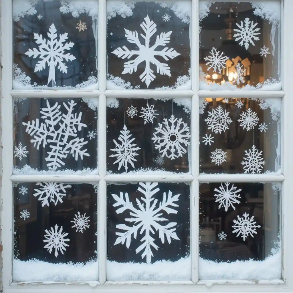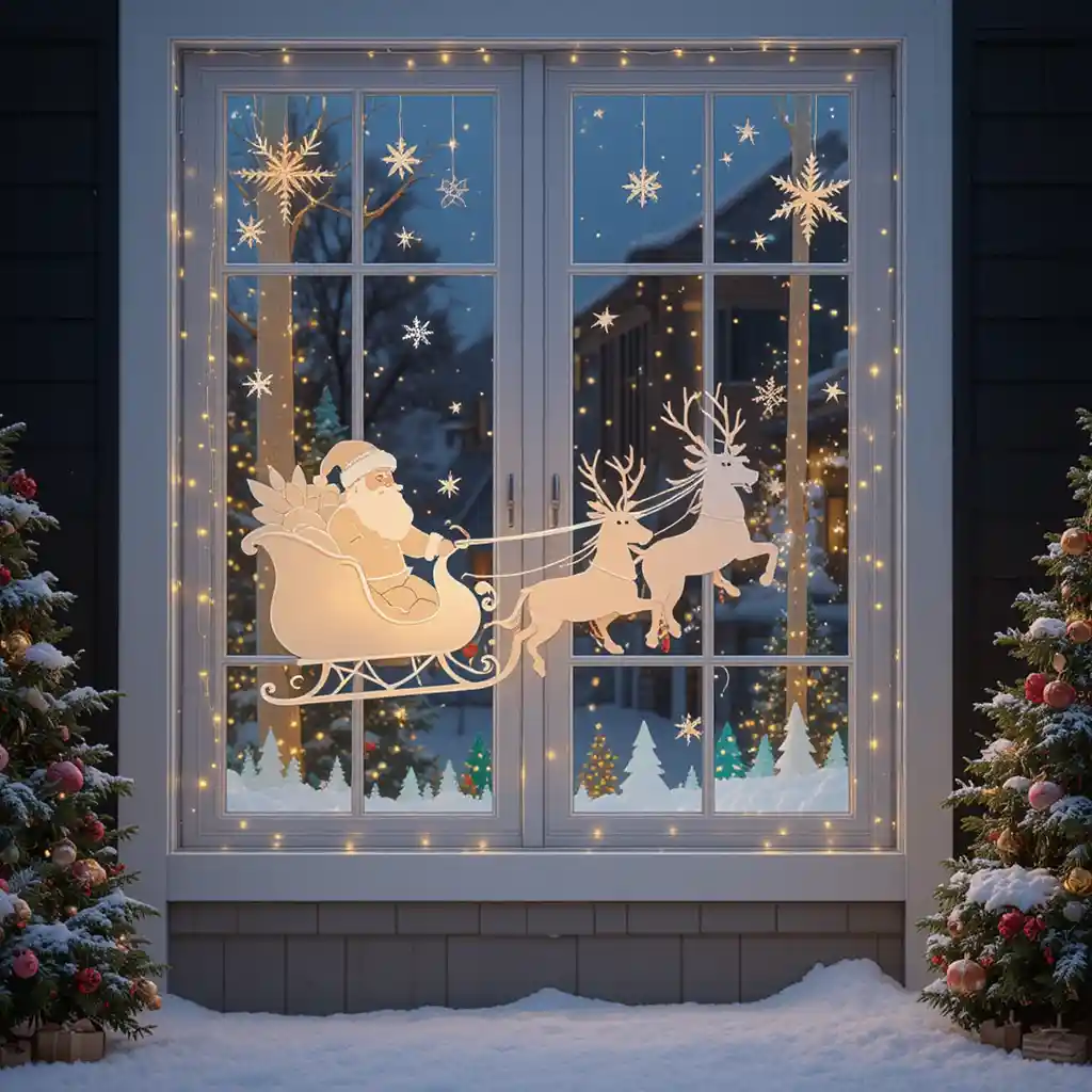 Transform your windows instantly with frosted glass stickers. These decals can mimic snowflakes, reindeer, or even Santa’s sleigh gliding across the sky. The look is subtle yet enchanting, perfect for adding a magical frosty touch without blocking natural light.