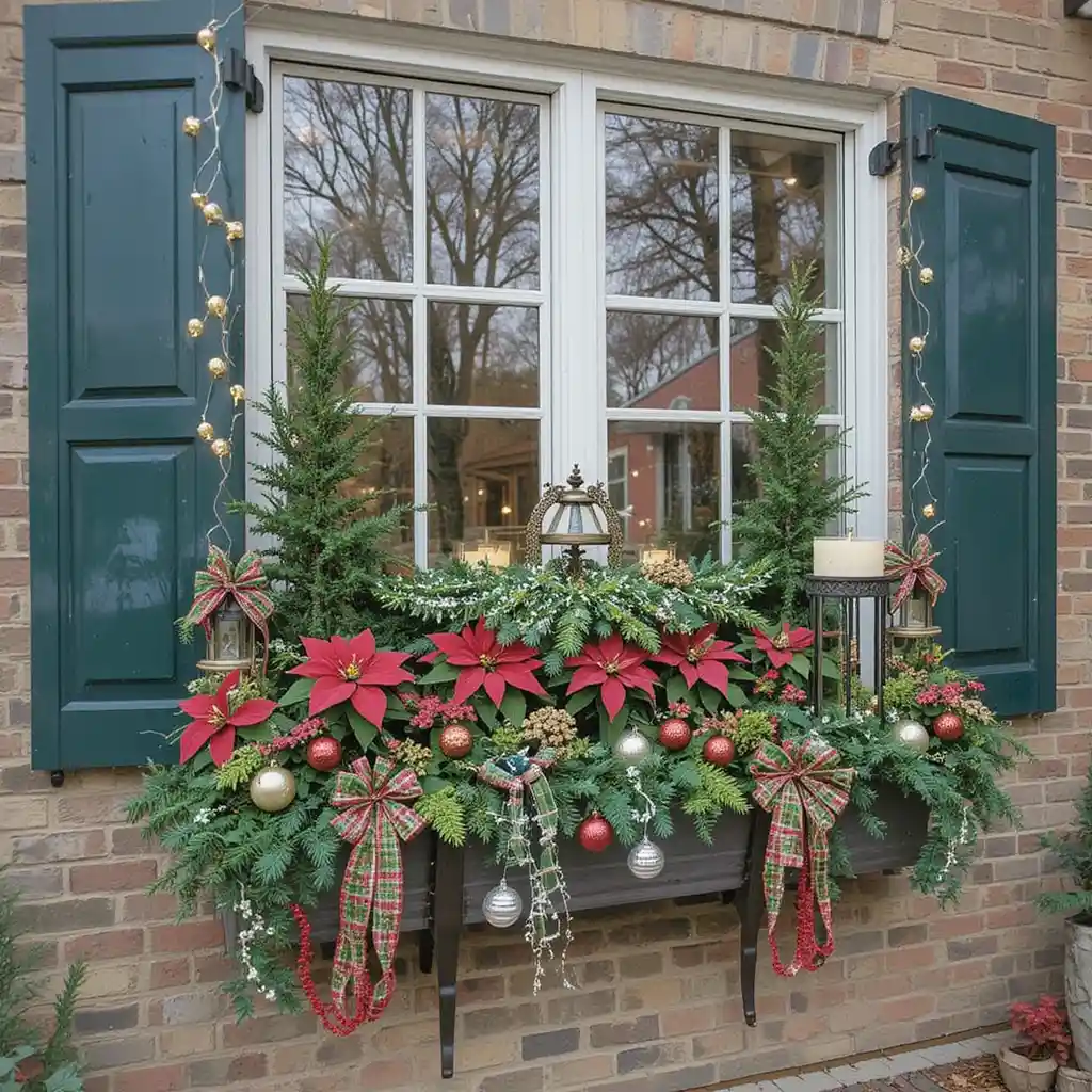 Fill outdoor window boxes with evergreens, poinsettias, and ornaments. Add a touch of ribbon or cascading lights to transform your exterior windows into festive floral displays.