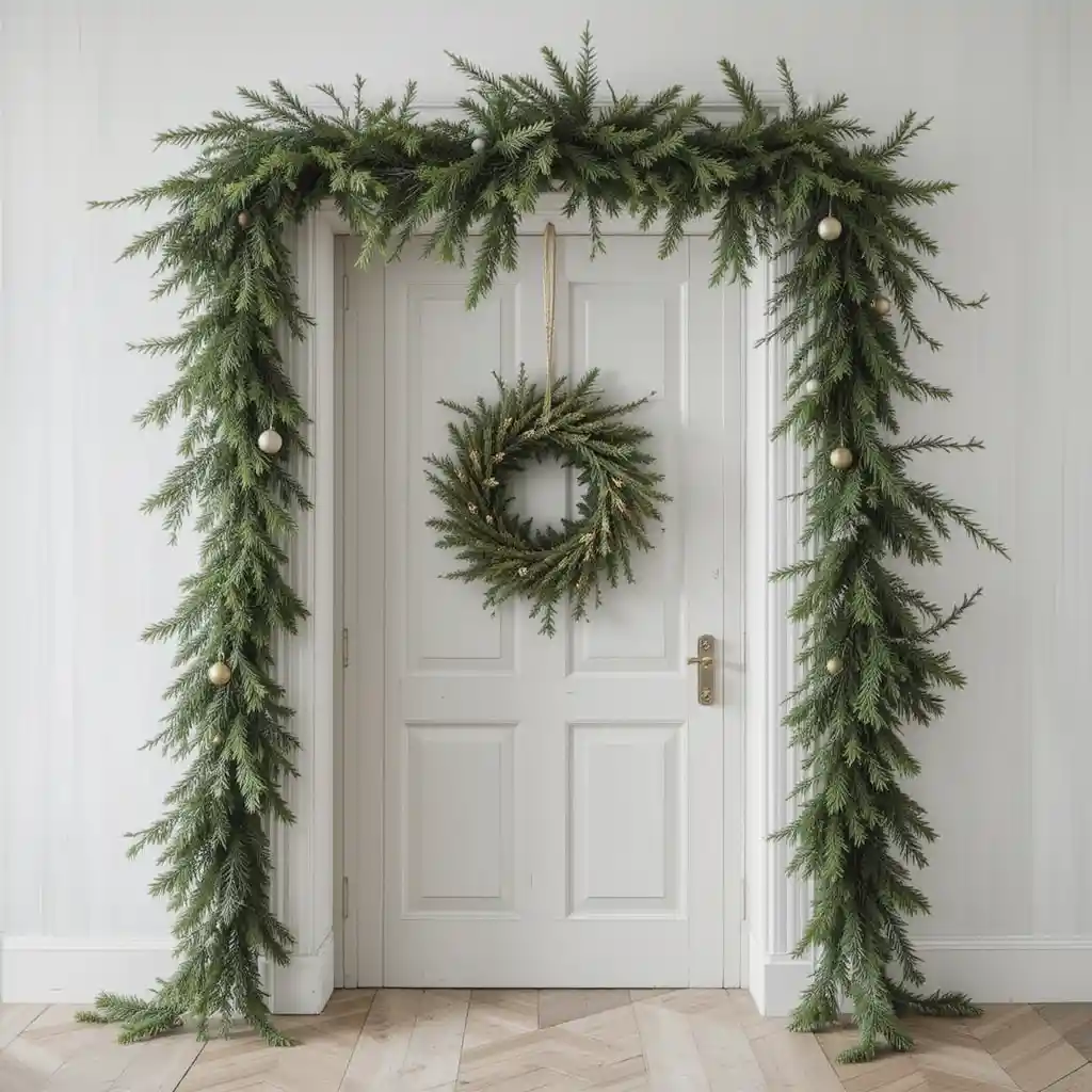 Frame doorways with lush, natural garlands. Keep them simple without heavy ornaments, letting the evergreen branches speak for themselves in understated beauty.