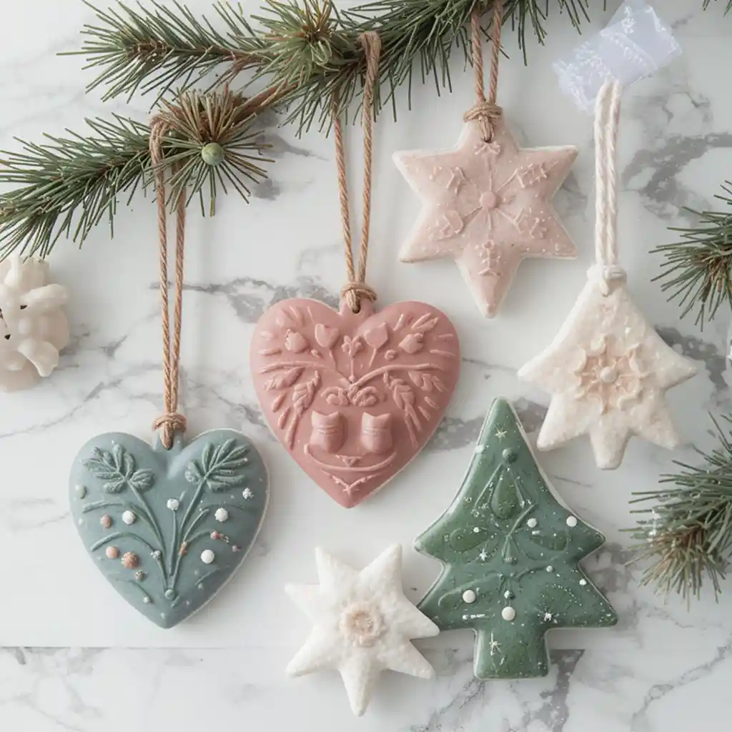 Clay ornaments shaped into hearts, stars, or trees reflect Scandinavian craftsmanship. They’re simple, tactile, and versatile, offering both charm and tradition to your festive tree.