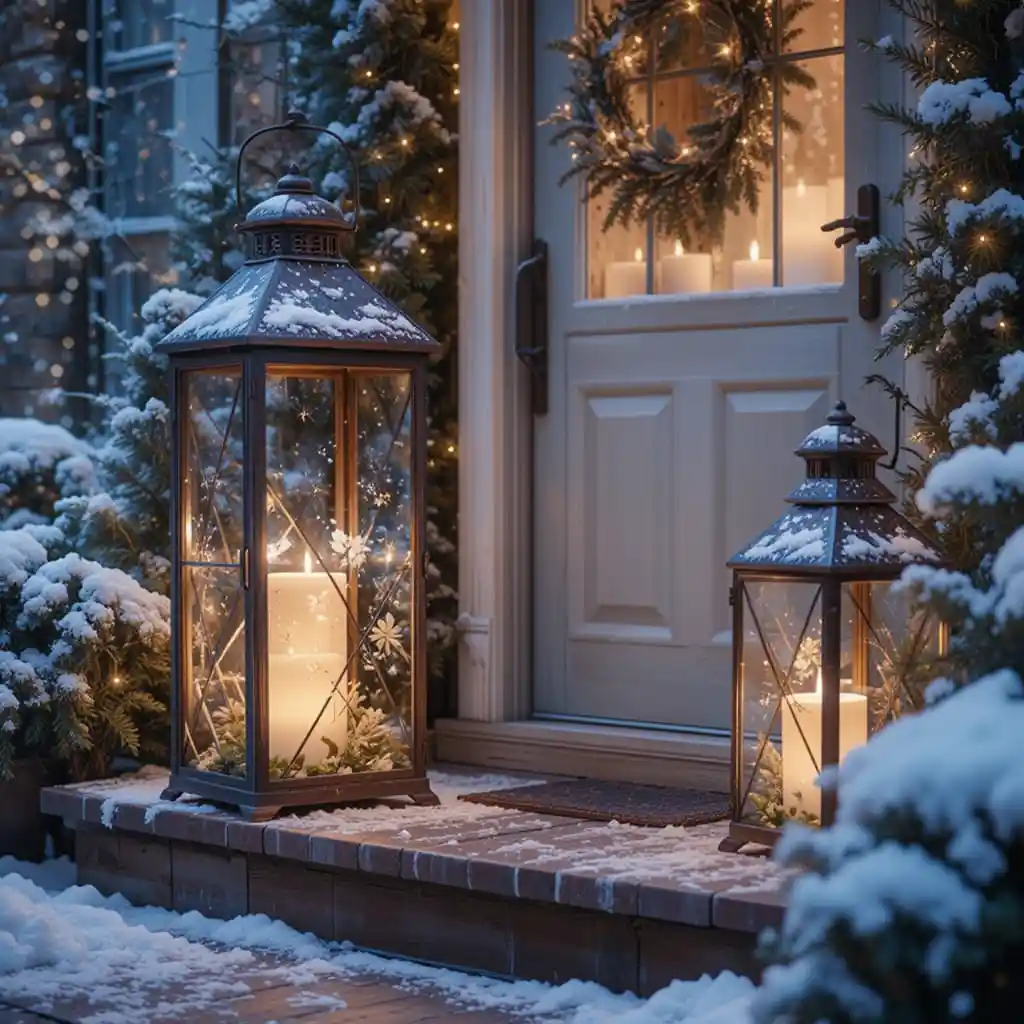 Place large lanterns filled with candles at your doorstep or balcony. The inviting glow creates a welcoming Nordic exterior, perfect for snowy winter evenings.