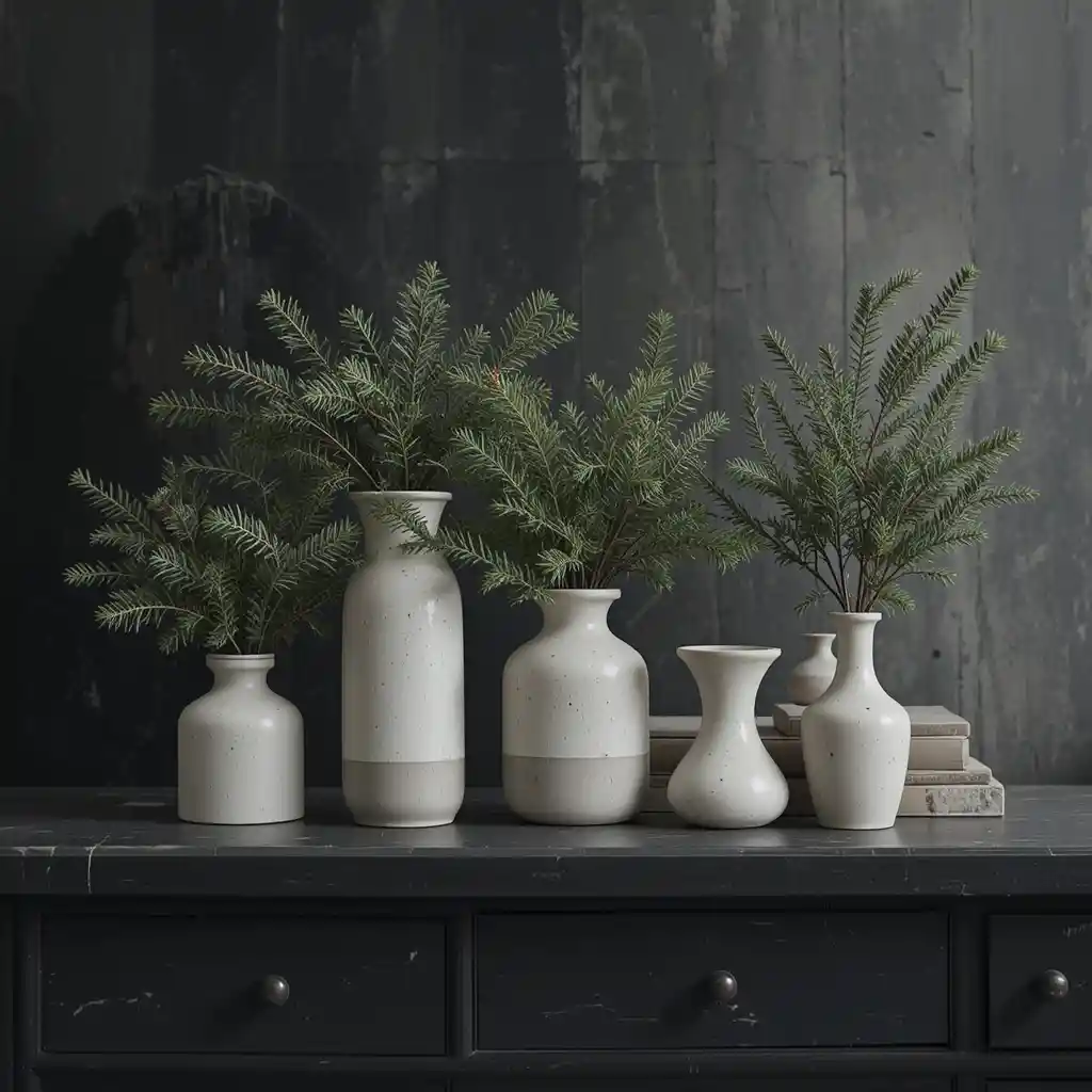 Instead of lavish bouquets, place small sprigs of pine or fir into neutral-toned vases. This minimal approach highlights the natural beauty of greenery while staying true to the Nordic principle of understated elegance.