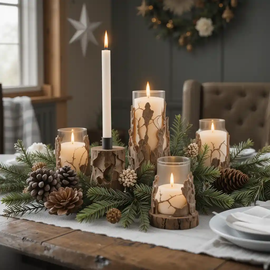 Candlelight is at the core of Nordic holiday décor. Opt for rustic candle holders carved from wood or metal, and surround them with pinecones or evergreen sprigs for a simple yet captivating centerpiece.