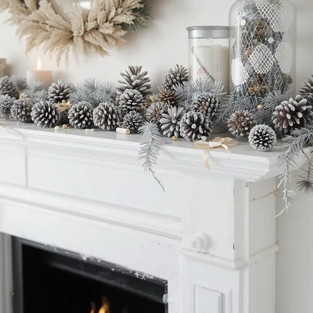 Scatter pinecones across shelves, mantels, and tables for an organic touch. Spray lightly with white paint for a frosted effect that ties into the snowy Nordic landscape.